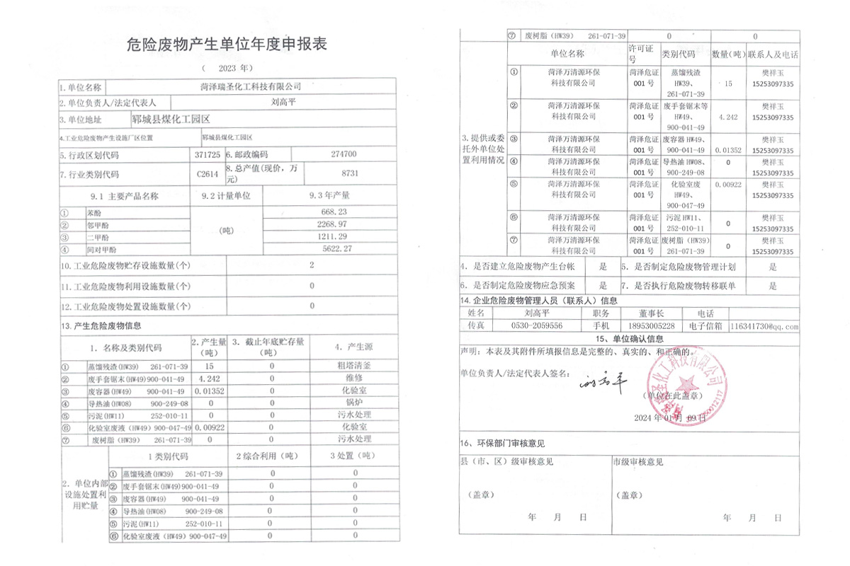 菏澤瑞圣化工科技有限公司是2011年鄆城縣招商引資項目,地處鄆城縣煤化工園區,是一家從事粗酚深加工企業。公司環境好,待遇優厚。